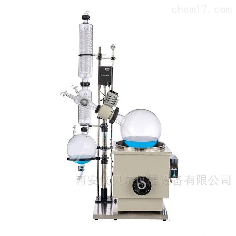RE-5003旋转蒸发器大口径蒸发瓶恒速旋转,水浴锅恒温加热,在此条件下:物料在蒸发瓶内壁形成大面积均匀薄膜快速蒸发,在真空条件下可以提高蒸发效率(需连接真空装置),溶媒蒸汽经玻璃冷凝盘管时冷却成液体(需连接冷却装置),回收于收集瓶。本系列产品使用需配套真空装置(循环水式、旋片式、隔膜式等真空泵),冷却循环装置组成系统装置。