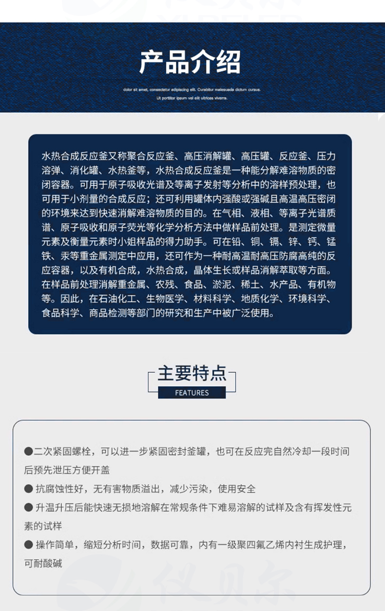 2.升温、升压后,能快速无损失地溶解在常规条件下难以溶解的试样及含有挥发性元素的试样。